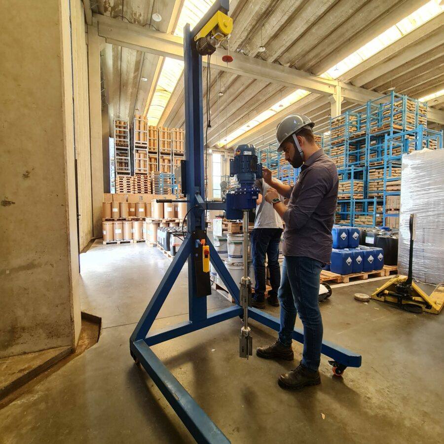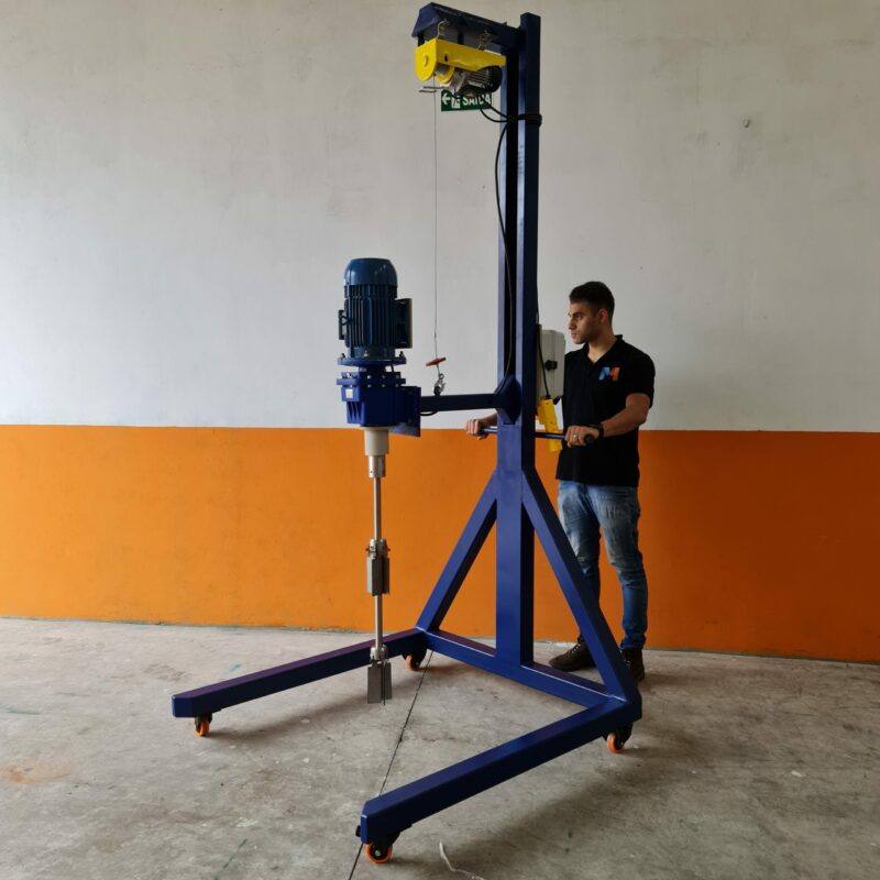 Devido sua mobilidade através de 04 rodízios, pode se deslocar pela empresa atendendo aos processos onde quer que haja um tanque IBC, Tambor 200 litros ou reservatório – sendo capaz de homogeneizar, dispersar, dissolver, cisalhar, diluir, agregar, misturar, solubilizar e suspender sólidos.